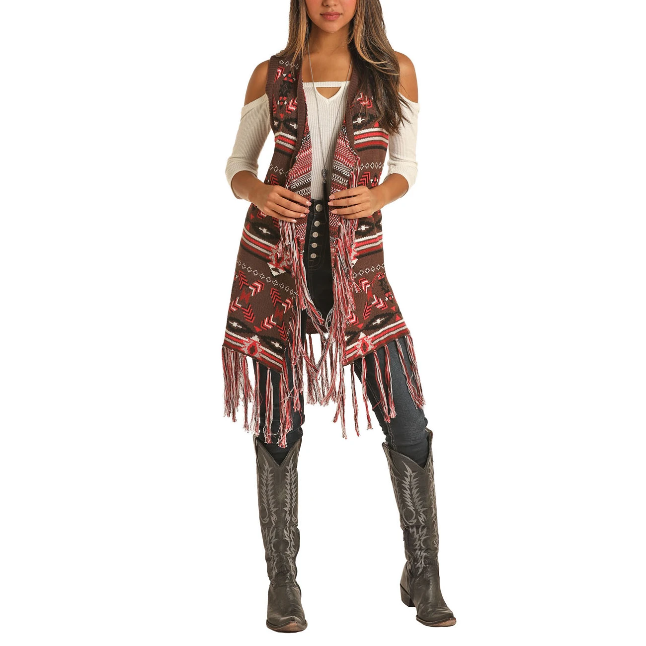Powder River Outfitters® Ladies Aztec Jacquard Fringe Vest 58A6716